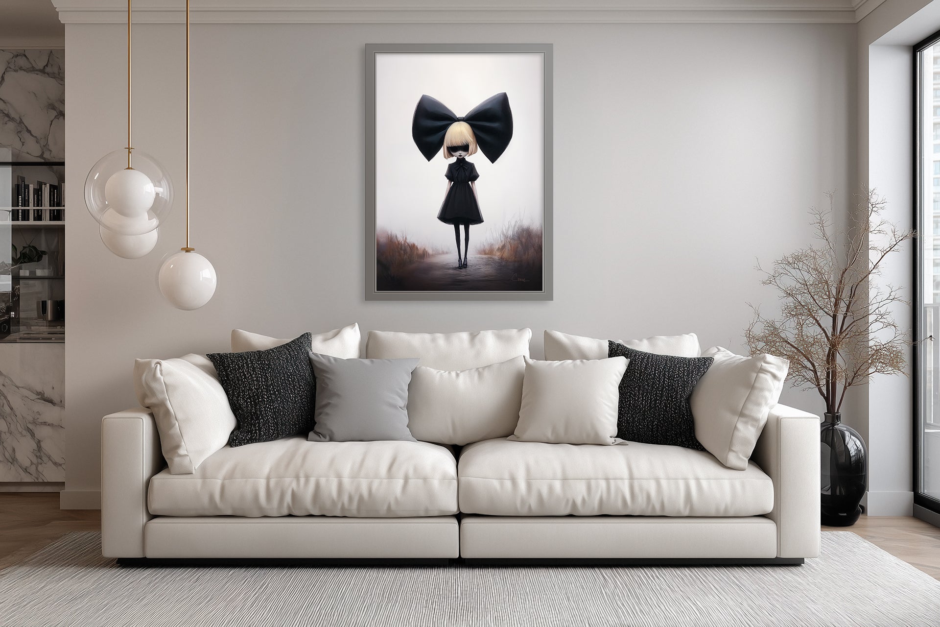 "Pretty Poison" – Want to play with me? Polished, poised, and chilling, the blonde doll-like girl stands under her massive bow. Innocence has become a mask here, elegance sharpening into something sinister.