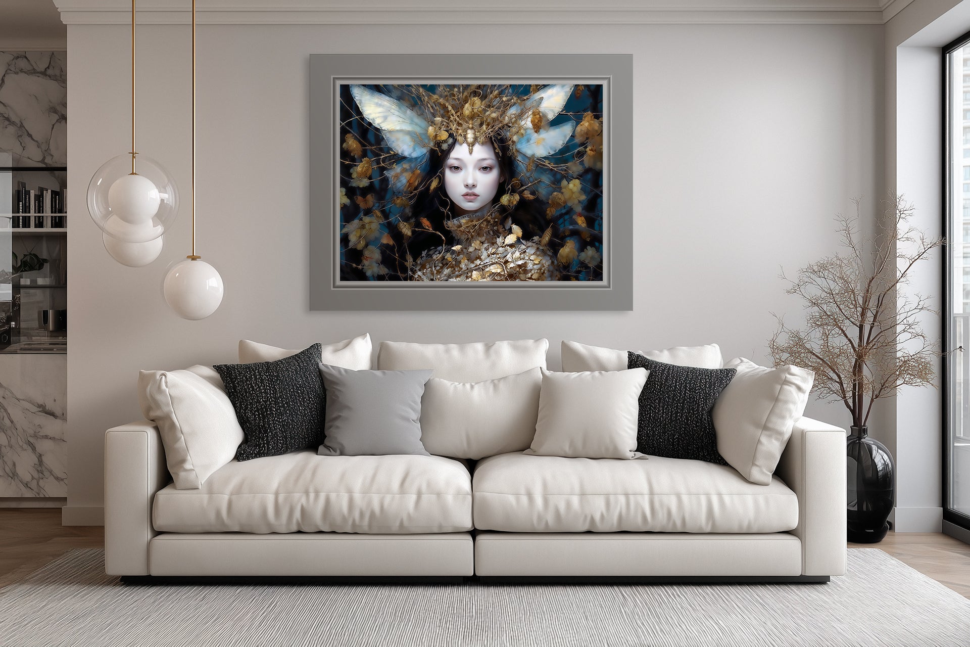 Art Style: Dreamlike fantasy portrait—muted palettes and glowing accents create a twilight realm of ethereal, insect-inspired surrealism.