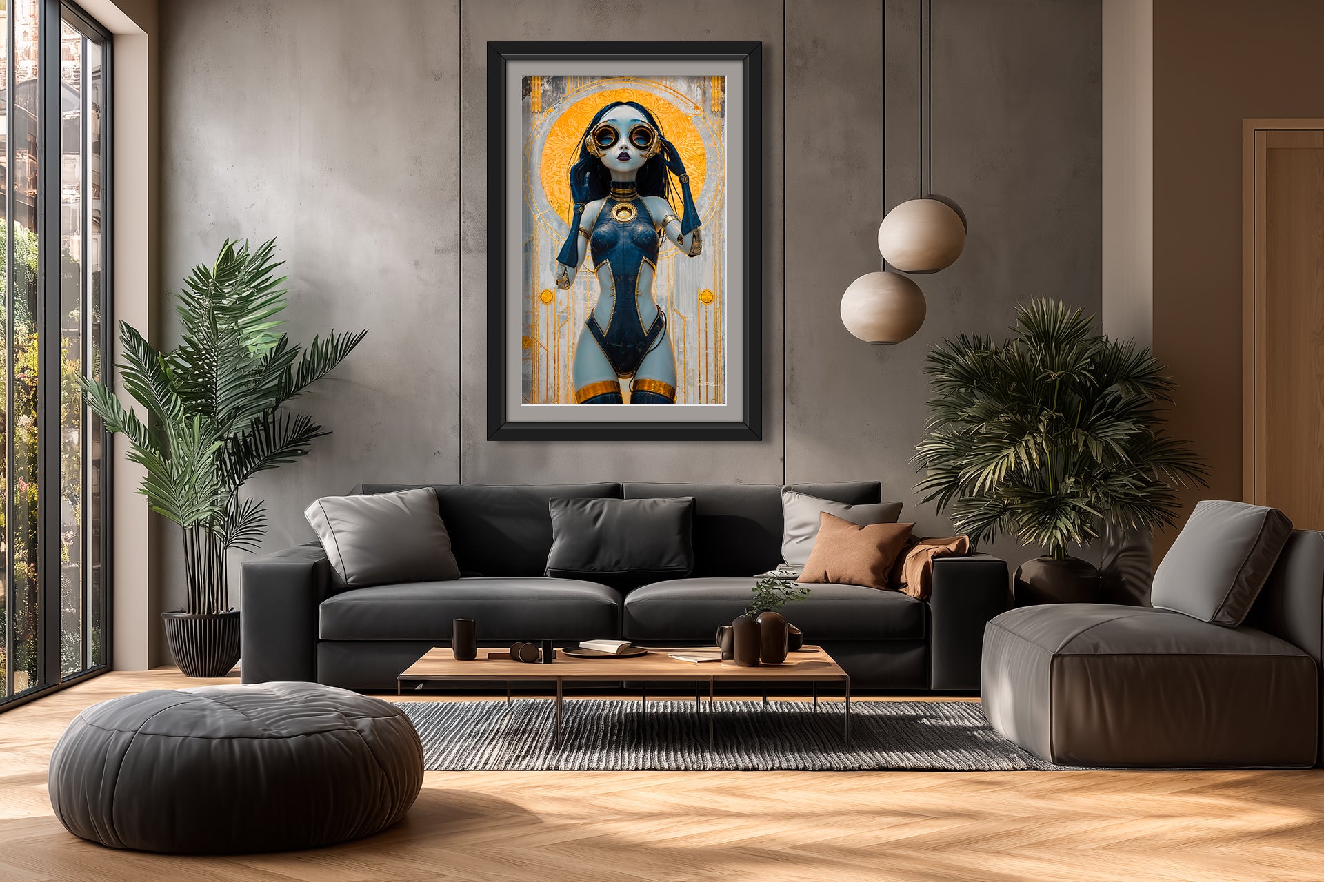 "Strangely Beautiful No. 9" – A darkly adorned android priestess, lips shaded in twilight tones, hands raised as though preparing a ritual. Her presence is magnetic—cold yet intimate—blurring the line between idol and lover.