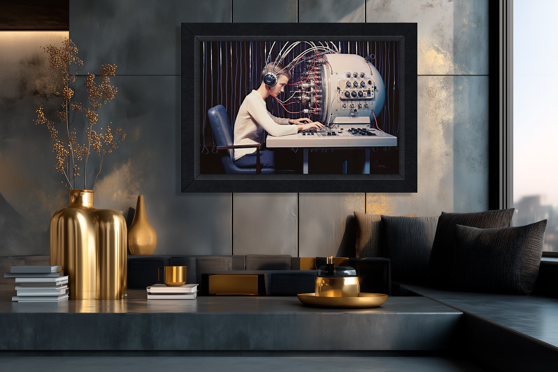 "The Studymatron" – Indoctrination. A focused young man sits with his head crowned with cables that snake into a massive spherical device bristling with dials. Somewhere between academia and mad science, the Studymatron demands total concentration.