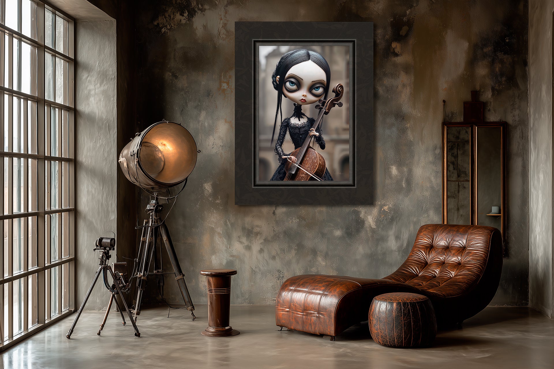 Art Style: Victorian portraiture, doll realism, gothic aristocracy, Burton’s Frankenweenie sensibility, romantic melancholy.